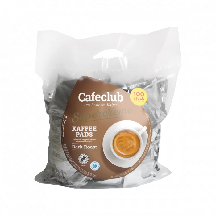Caféclub Supercreme Dark Roast Voordeeltas |100 pads met elk 7 gram | Klimaatneutraal gecertificeerd. |Rainforest Alliance gecertificeerd |In Nederland gemaakt.